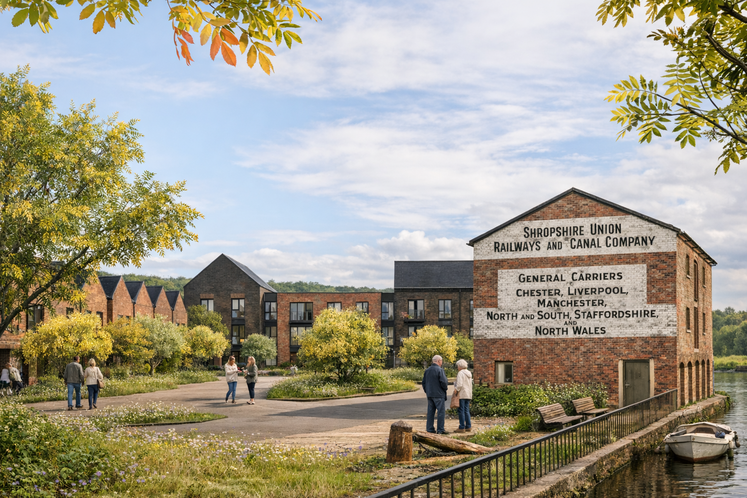 Ellesmere Wharf is a mixed-use scheme alongside the Shropshire Union Canal Llangollen Branch in Ellesmere, Shropshire. The site contains an original listed brick warehouse, which will be refurbished as part of the scheme and converted into a retail until to secure the buildings future.