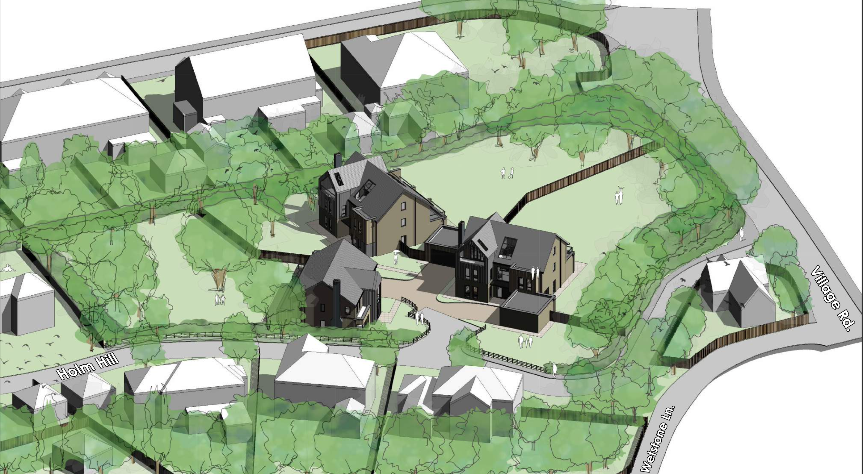The vacant site has several ecological constraints and the scheme was sensitively designed with this in mind. Paddock Johnson worked closely with the Local Authority, Landscape Architects and Ecologists to ensure that the scheme supports the wildlife across the site. The proposals enhance the street scene along Holm Hill and bring a new life to a vacant, overgrown site.