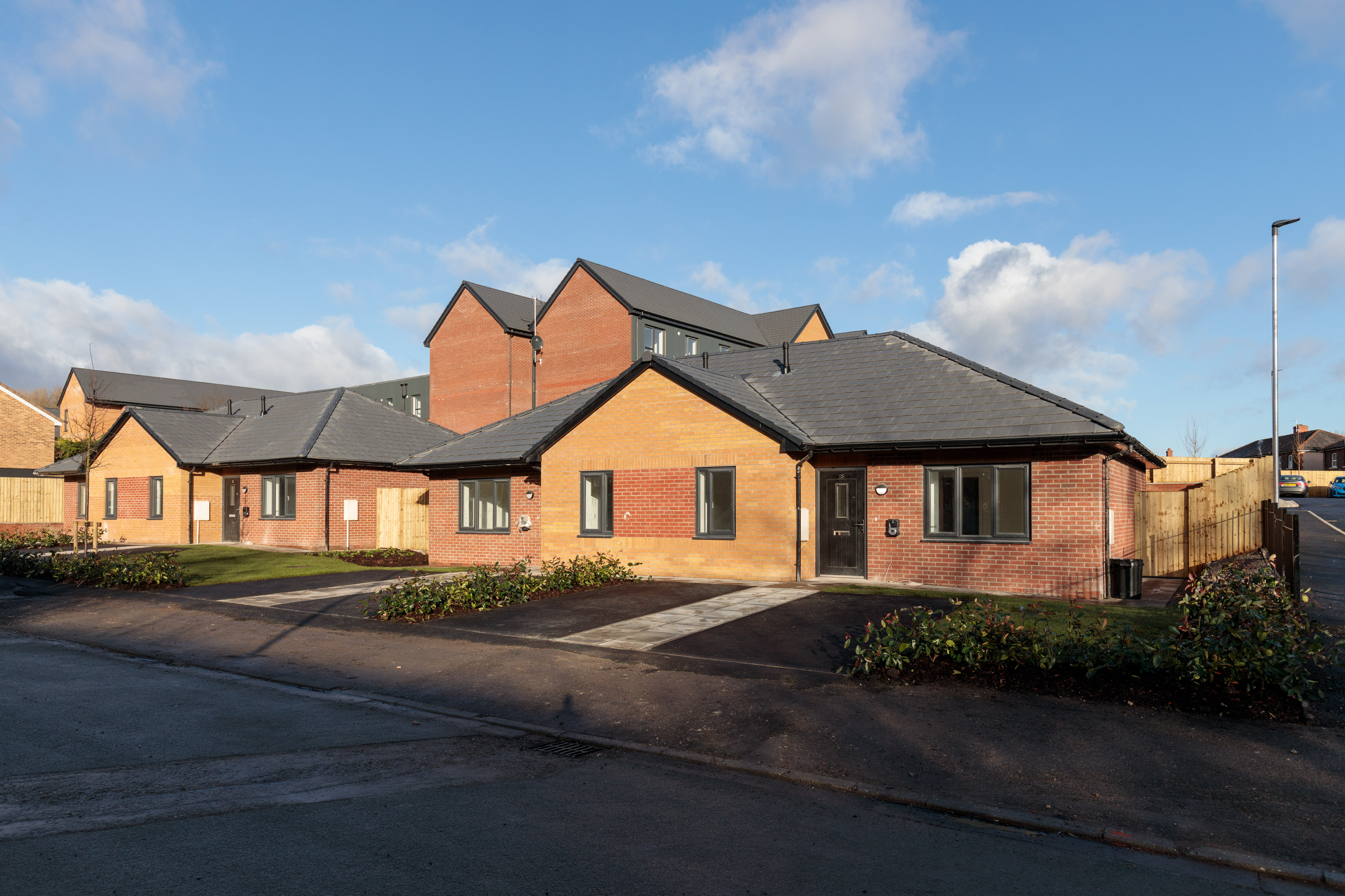 The bungalows follow both the existing street pattern and proposed new access road and their design compliment the main apartment complex.