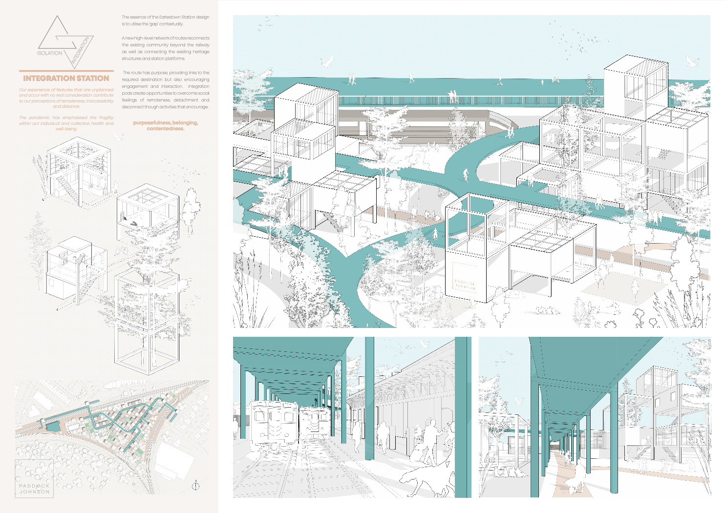 The essence of the Earlestown Station design is to utilise the ‘gap’ contextually. A new high-level network of routes reconnects the existing community beyond the railway as well as connecting the existing heritage structures and station platforms. The route has purpose, providing links to the required destination but also encouraging engagement and interaction. Integration pods create opportunities to overcome social feelings of remoteness, detachment and disconnect though activities that encourage . . .