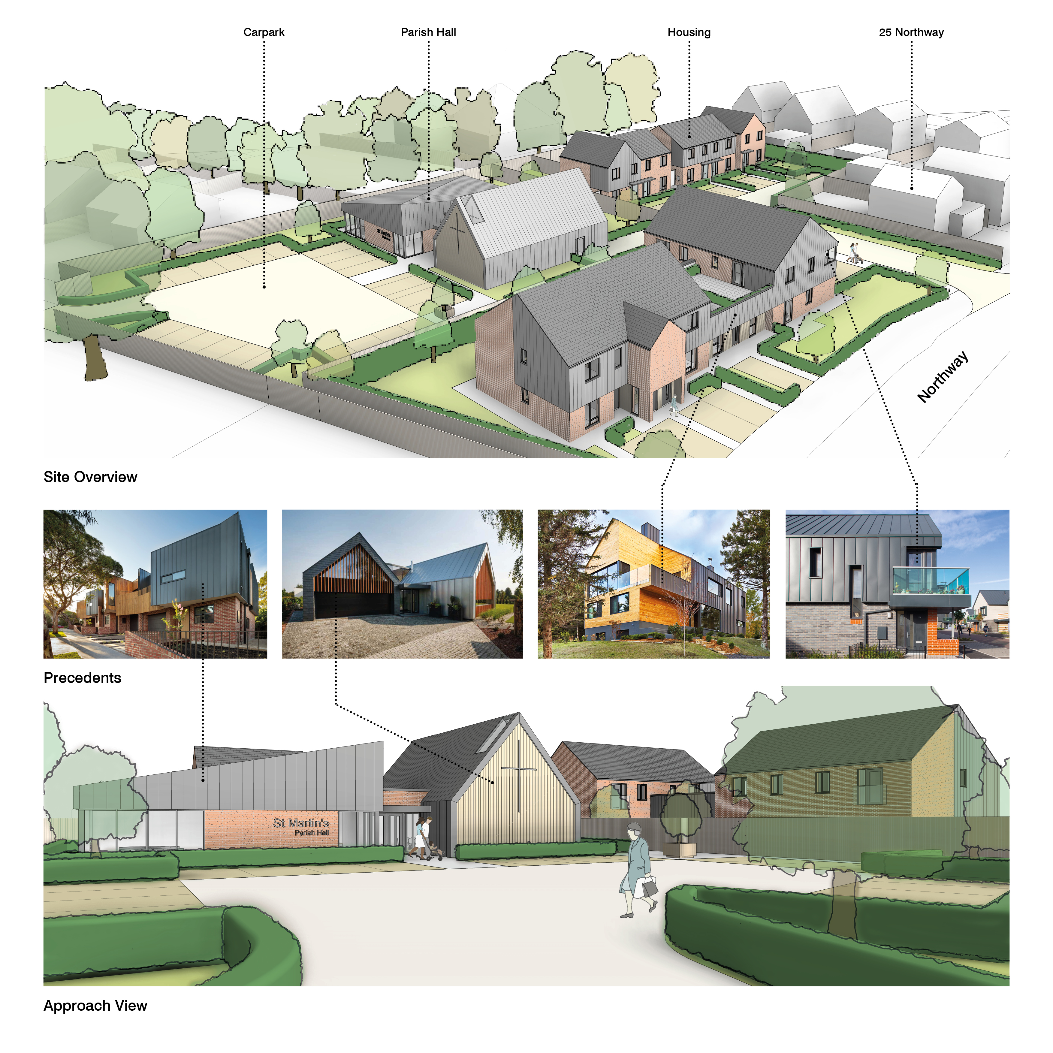 Paddock Johnson were appointed via mini competition to design a new community parish hall and affordable housing on the site of St Martins Parish Hall, a 1950’s building no longer fit for purpose. Working in conjunction with Regenda, the Parish sought to redevelop the site to provide as many social benefits as possible through the provision of a new Parish Chapel together with new affordable housing.